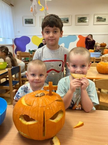 Milí rodiče a děti,moc Vám děkujeme za Vaši účast na našem dýňování ve středu 22. října 2025. Bylo to krásné odpoledne plné podzimní nálady, vůně dýní a spousty úsměvů a povídání. Vaše nápadité a originální výtvory teď zdobí naši školkovou zahradu a po setmění se všechny dýně rozsvěcují 🕯️Děkujeme, že jste s námi!