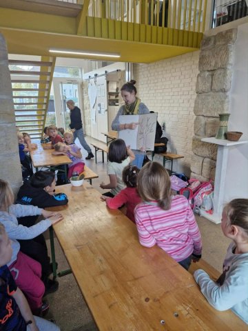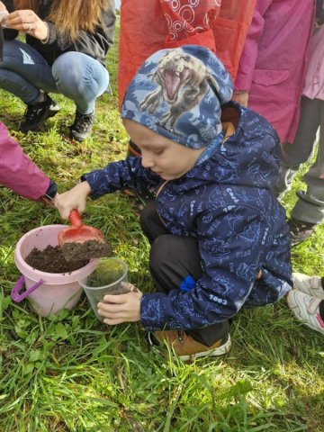 V pondělí 13.10. se přihlášené děti vydaly vlakem do Eko-centra v Brništi. Program pro tento rok je "LES"🌳🌲🍂, dnes děti poznávaly " STROMY V LESE", rozlišovaly listnaté a jehličnaté, zasadily semínka smrku, zahrály si hry a vytvořily koláž stromu, kterou budou postupně dodělávat.