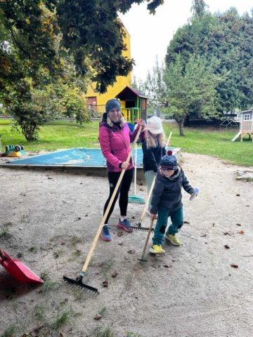 Milí rodiče, rádi bychom poděkovali všem, kteří se aktivně zapojili do společné akce na zvelebení školní zahrady a nejvíce si vážíme pomoci s vyklízením sklepa a půdy do připraveného kontejneru – sami bychom to nezvládli. Díky vaší práci se podařilo také uklidit zahradní prvky před zimou, vyhrabat listí a zazimovat naší trampolínu... Na závěr jsme si všichni užili příjemné chvíle a společně jsme si opekli buřty. Děkujeme všem za ochotu, spolupráci a čas, který jste věnovali naší školce. Kolektiv MŠ