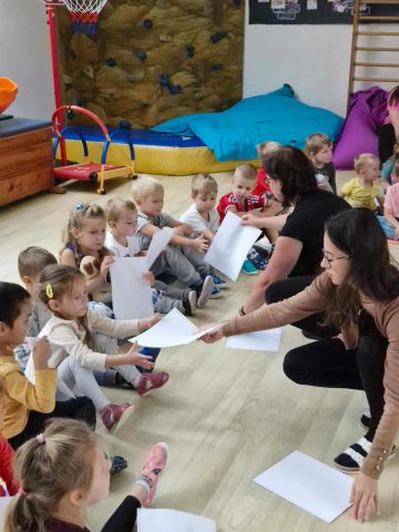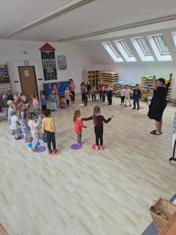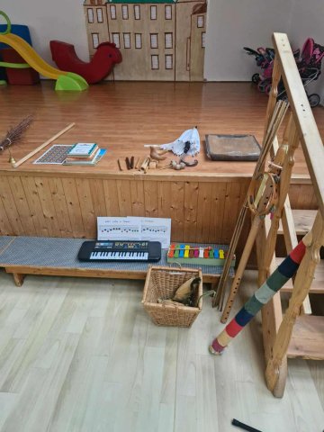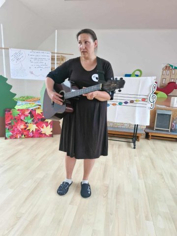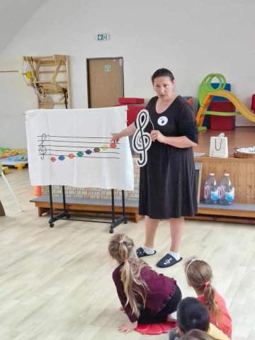 Ve čtvrtek 25.9. proběhl ve školce tématický den " S tetičkou Notičkou". Děti poznávaly a hrály na neobvyklé hudební nástroje ( igelit. sáčky, chřestidla, vozembouch... ) ,seznamovaly se s rytmem a zkoušely různá dechová cvičení. Na konci děti čekala sladká odměna...