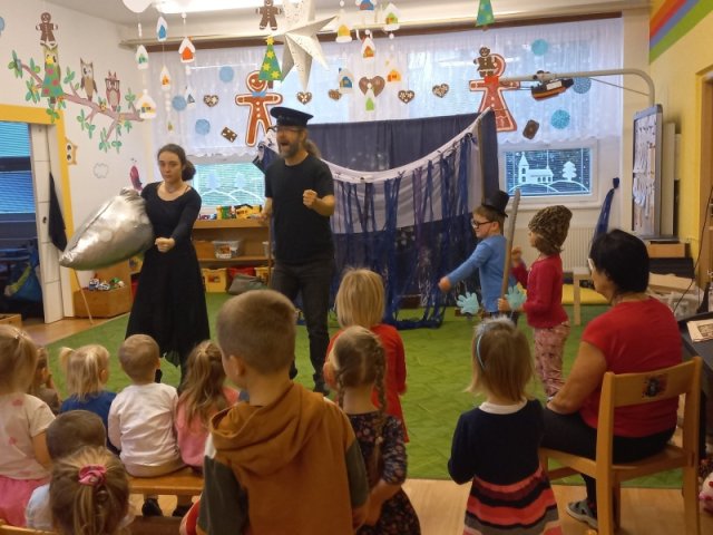 Děti se od prvních minut nechaly vtáhnout do děje – pozorně poslouchaly dobrodružný příběh, spontánně reagovaly na pirátské výzvy, zpívaly, tančily a společně s herci se aktivně zapojovaly do celého představení. Pro mnohé z nich to byl nezapomenutelný zážitek, protože si dokonce vyzkoušely roli malých herců a vystoupily přímo na jevišti. Atmosféra byla veselá, hravá a plná smíchu. Dětem se představení velmi líbilo a už nyní se těšíme na další divadelní návštěvu.