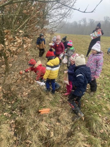 Ve čtvrtek 18. prosince jsme se vydali do lesa udělat hostinu a radost zvířátkům. Připravili jsme jim nadílku plnou mrkvičky, jablíček a tvrdého chleba a společně jsme si připomněli, jak je důležité myslet v zimním období i na přírodu kolem nás. 🙂 A protože byly děti celý rok moc hodné, čekalo na ně překvapení i ve školce – pod stromečkem našly spoustu nových her, které mohou hrát společně, spolupracovat a užít si spoustu legrace. 🙂 Moc děkujeme všem za dobroty pro zvířátka a za podporu společných aktivit. ❤️