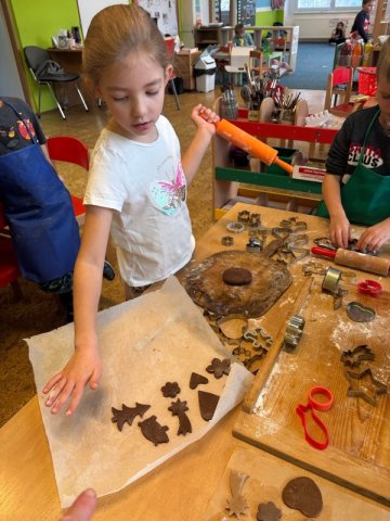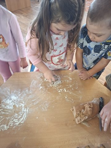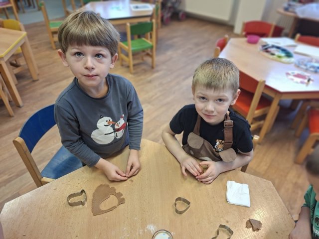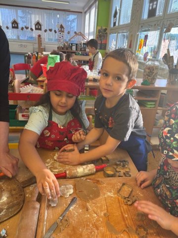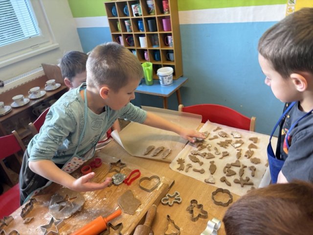 Dnešní dopoledne se neslo v kouzelné vánoční atmosféře. Děti se nejprve seznámily s tím, co všechno patří do perníčkového těsta – společně jsme si povídali o jednotlivých surovinách a o tom, jak se těsto připravuje. Poté si každý vyzkoušel válení těsta, vykrajování nejrůznějších tvarů a potírání perníčků před pečením. Děti pracovaly s obrovským nadšením a pečlivostí, a tak nebylo divu, že celá školka provoněla vůní čerstvě upečených perníčků. A protože k pečení samozřejmě patří i ochutnávka, na závěr jsme si dopřáli malé mlsání – a všichni se shodli, že naše perníčky se opravdu povedly. Mňam! 😊