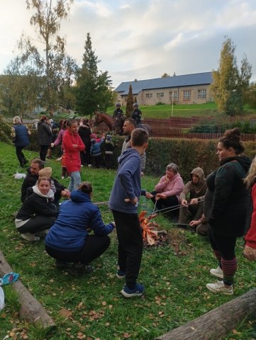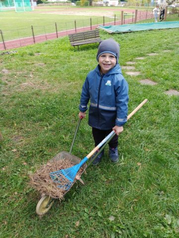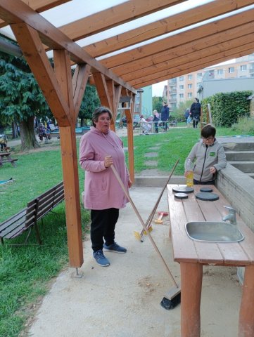 Ráda bych poděkovala všem rodičům, dětem i zaměstnancům naší mateřské školy, kteří se aktivně zapojili do společné akce na zvelebení školní zahrady. Společnými silami se nám podařilo uklidit zahradní prvky do sklepa před zimou, obrousit domečky na pitný režim, připravit dřevěný nábytek do tříd, vyhrabat listí, zredukovat ostružiny a zpevnit rostlinný tunel. Na závěr jsme si všichni užili příjemné chvíle – děti si zazpívaly s paní učitelkou Irenkou za doprovodu kytary a společně jsme si opekli buřty.