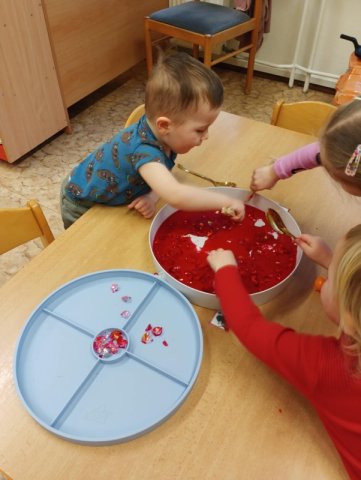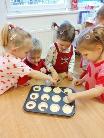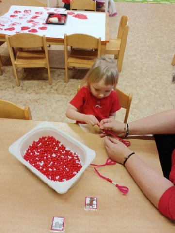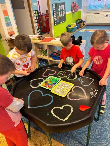 Během dopoledne jsme pekli voňavé muffinky, stavěli srdíčka z kostek, korálků i kamínků a vyráběli přáníčka „z lásky“. Děti se s nadšením zapojily do všech aktivit a s radostí tvořily nejen pro své blízké, ale také samy pro sebe. Učili jsme se, že mít rád znamená být k sobě laskavý, vážit si sám sebe i druhých. Společně jsme si povídali o tom, co pro nás znamená přátelství, kamarádství a vzájemná pomoc. Děti sdílely své myšlenky o tom, koho mají rády a proč je důležité si hezká slova a projevy náklonnosti říkat. Posilovali jsme tak vztahy v kolektivu a podporovali vzájemný respekt a sounáležitost. Atmosféra byla velmi příjemná a plná úsměvů. Děkujeme, že s námi vytváříte prostředí, ve kterém se děti mohou cítit bezpečně, přijímaně a s radostí.
