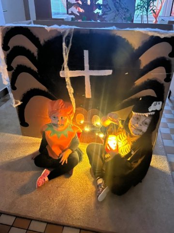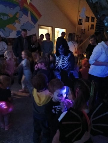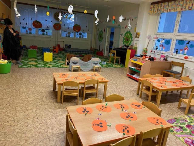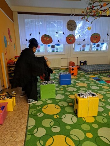 Tato oblíbená akce se každoročně koná na školní zahradě, ale protože nám tentokrát počasí nepřálo a pršelo, nezalekli jsme se a vytvořili jsme strašidelnou školku přímo uvnitř budovy.