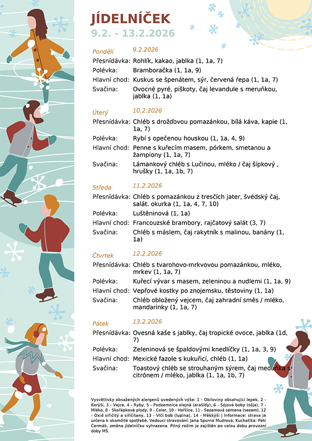 Aktuální jídelní lístek 9.2. - 13.2.2026