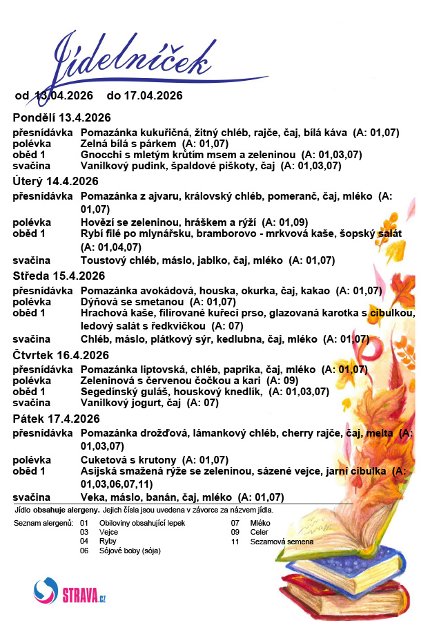 Aktuální jídelní lístek od 13. 4. - 17. 4. 2026