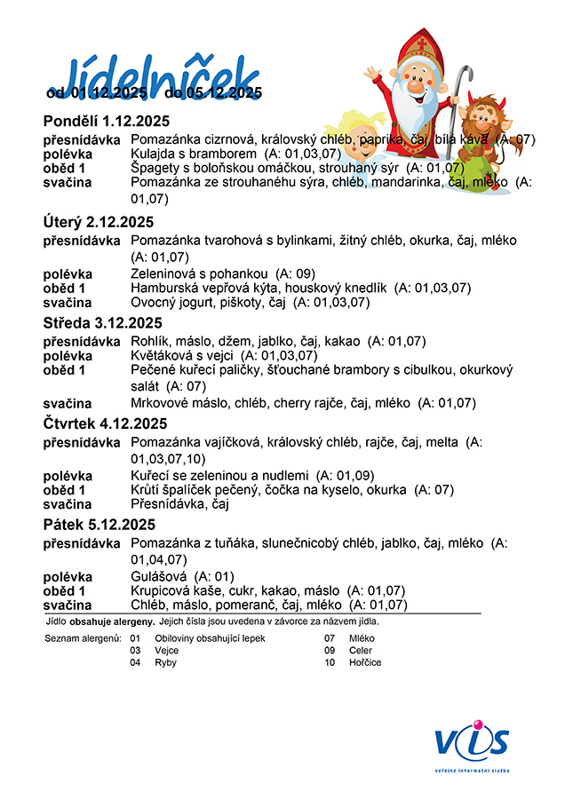 Aktuální jídelní lístek od 1.12.2025 do 5.12.2025