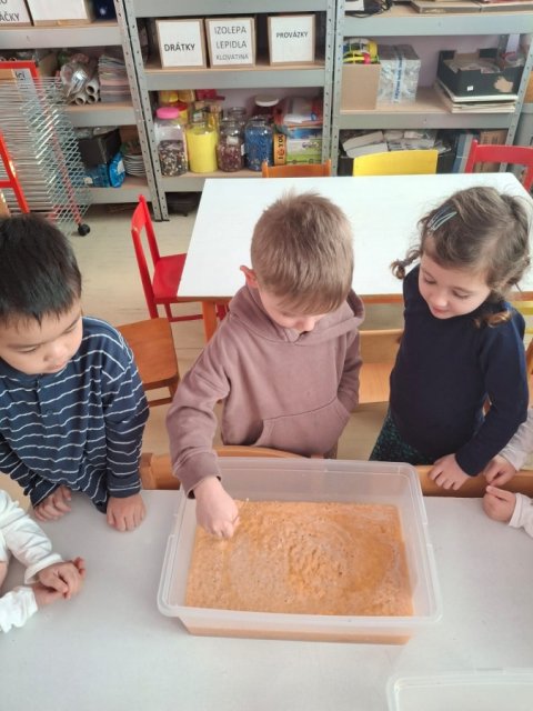 Všechny děti byly rozděleny na čtyři skupiny a každá skupina zkoumala jeden materiál: