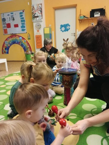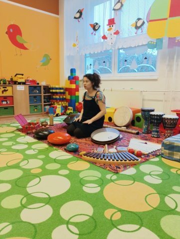 Vyprávění bylo citlivě doprovázeno netradičními hudebními nástroji, se kterými se děti běžně nesetkávají. Zvukové efekty podporovaly dětskou představivost a umožnily jim hlouběji se ponořit do děje. Po skončení příběhu měly děti možnost si jednotlivé nástroje samy vyzkoušet. Experimentovaly s různou intenzitou hry, zkoumaly rozdíly mezi tichým a hlasitým projevem a učily se vnímat sílu zvuku i jeho působení na ostatní. Aktivita přirozeně rozvíjela schopnost soustředění, spolupráce i vzájemného respektu při společném hudebním projevu.