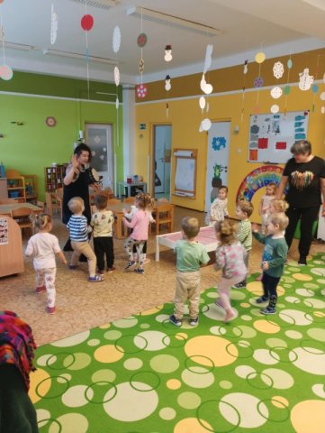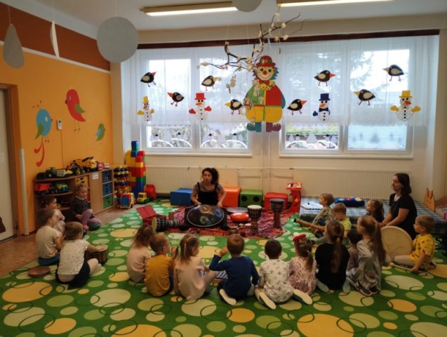 Ve středu 11. února proběhla v mateřské škole muzikoterapie zaměřená na prožitek, soustředění a rozvoj smyslového vnímání dětí. Program byl postaven na příběhu o lesní víle, přírodě a jejích pomocnících, kteří společně překonávali velkou bouři.