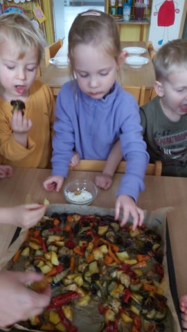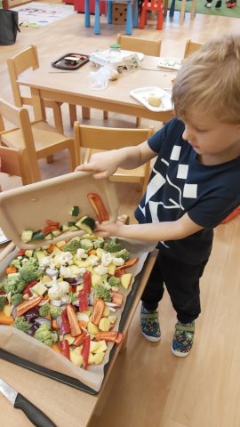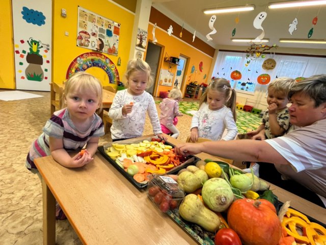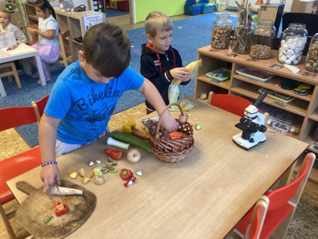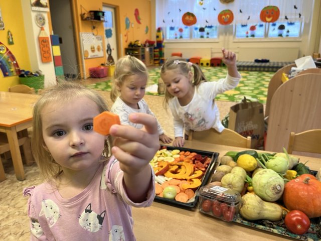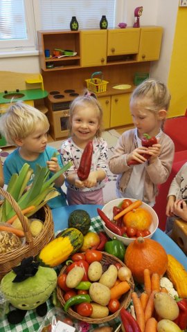 Děti se hravou formou seznamovaly s různými druhy zeleniny, třídily ji podle barev a tvarů, poznávaly, jak roste, a zkoušely odhadovat její vůni či chuť. Společně si také připravily malé zdravé pohoštění, které s chutí ochutnaly.