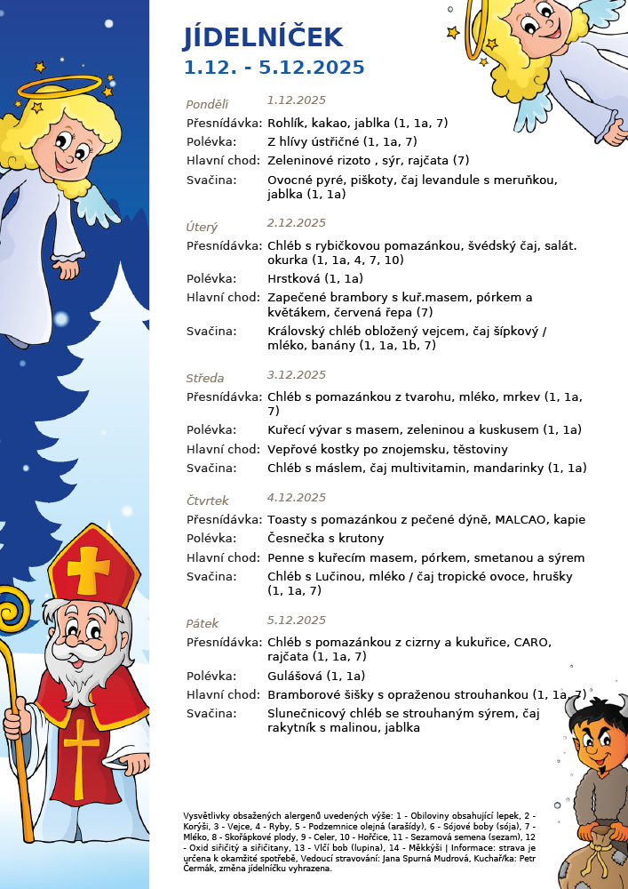 Aktuální jídelní lístek 1.12. - 5.12.2025