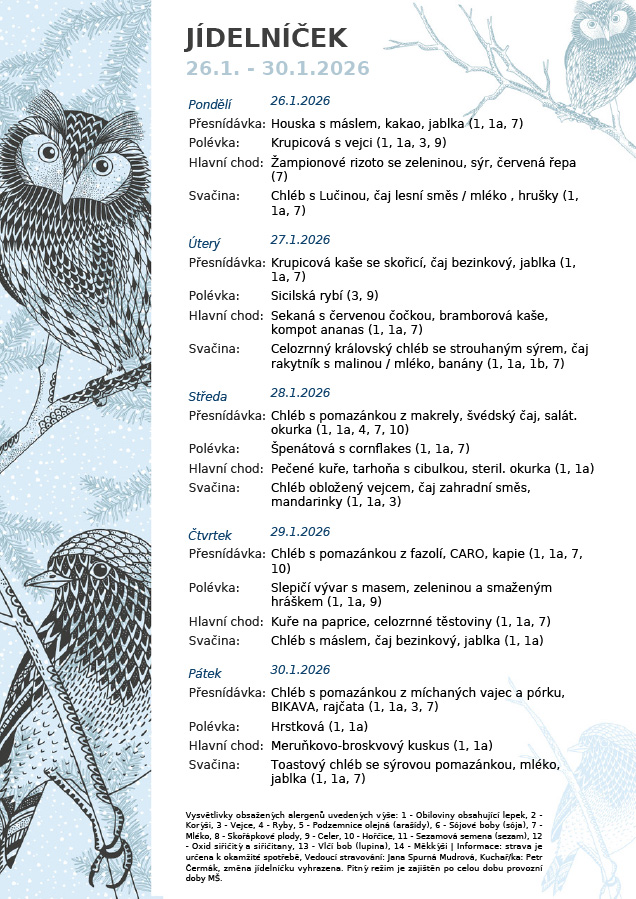 Aktuální jídelní lístek 26.1. - 30.1.2026