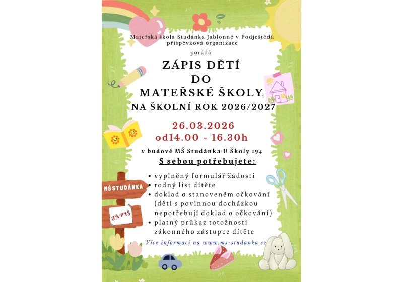 Číst dál: Informace k zápisu dětí do mateřské školy školní rok 2026/2027