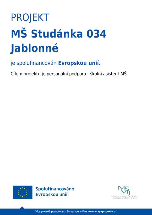 Cílem projektu je personální podpora - školní asistent MŠ.