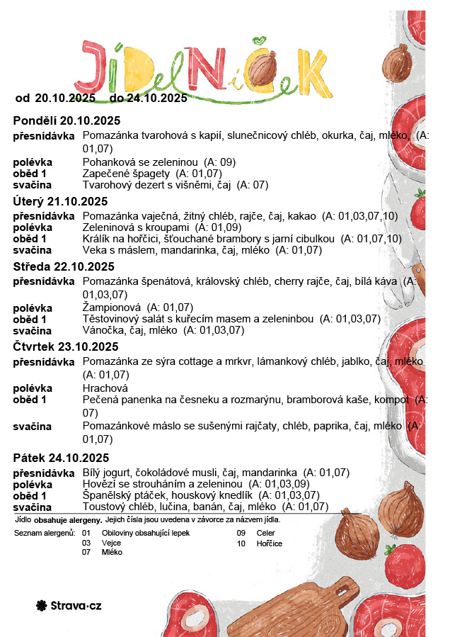 Aktuální jídelní lístek od 20.10.2025 do 24.10.2025